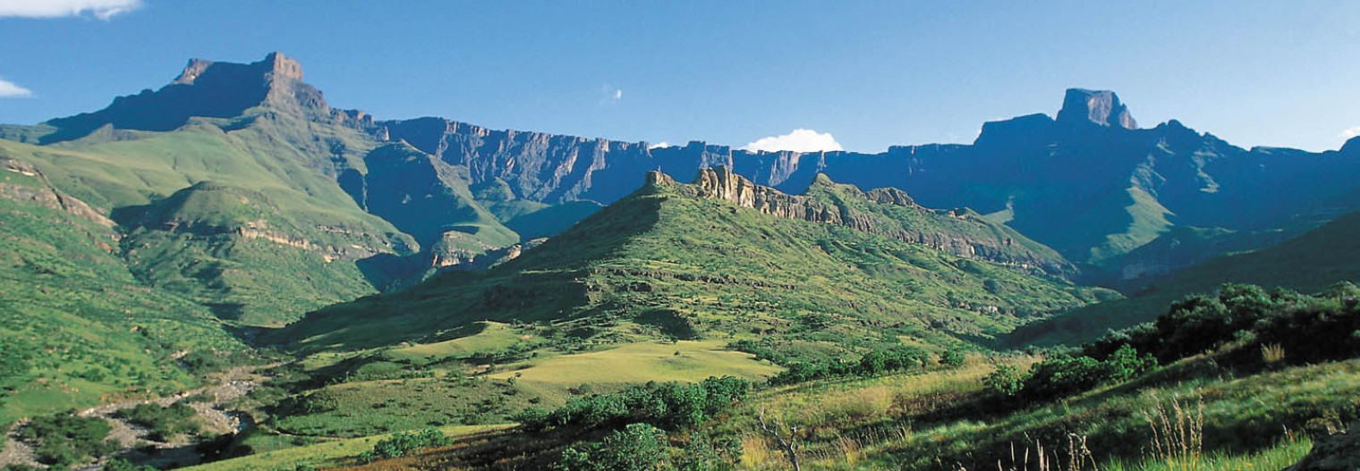 Der 2.428 Quadratkilometer große uKhahlamba Drakensberg Park grenzt östlich an das Königreich Lesotho. uKhahlamba kommt aus der Sprache der Zulu und heißt übersetzt "Wand der aufgestellten Speere". Aufgrund der vielen Gipfel, aufragenden Pfeiler und Zinnen sowie tiefe Schluchten und Überhängen kam der Park zu seinem Namen. Die Gipfel der Drakensberge ragen bis auf 3.482 m auf und bilden das höchste Gebirge im südlichen Afrika.